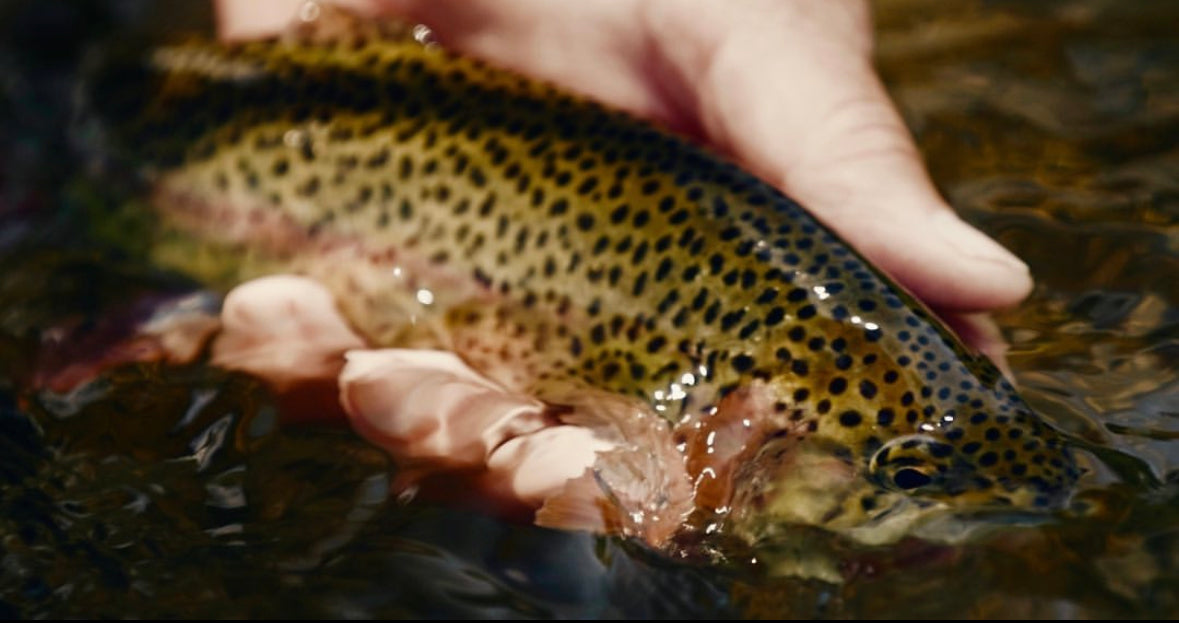 "First cast with my new bamboo rod and caught a 12 inch Rainbow!"