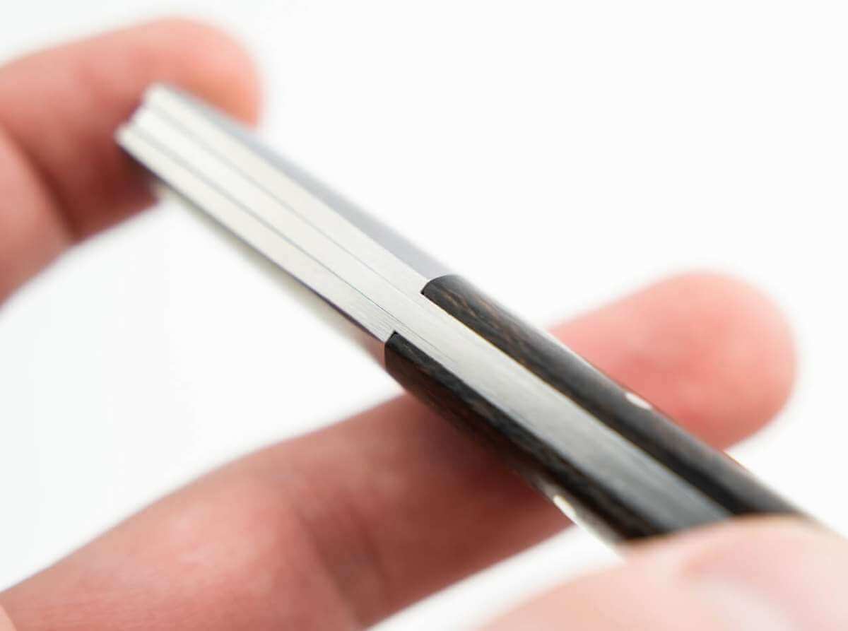 The Boker Barlow M4 Sherman-Damascus is supplied with a unique Damascus blade forged from various materials from the production of M4 Sherman tanks previously restored by the museum. The unique 80-layer Damascus is hand forged for us by Chad Nichols in the customized Ladder pattern and is reminiscent of the tank marks left in the ground by the heavy tracks of the M4 Sherman. The integrally constructed Barlow is supplied with burlap micarta handle scales that are colored to evoke the authentic camouflage finish of the U.S. Army and Marine Corps. The stainless steel handles are CNC-milled from the solid and also form the characteristic bolsters and are ground to a matt finish by hand. Supplied with a high-quality felt case for storage, a certificate of authenticity and an individual serial number.